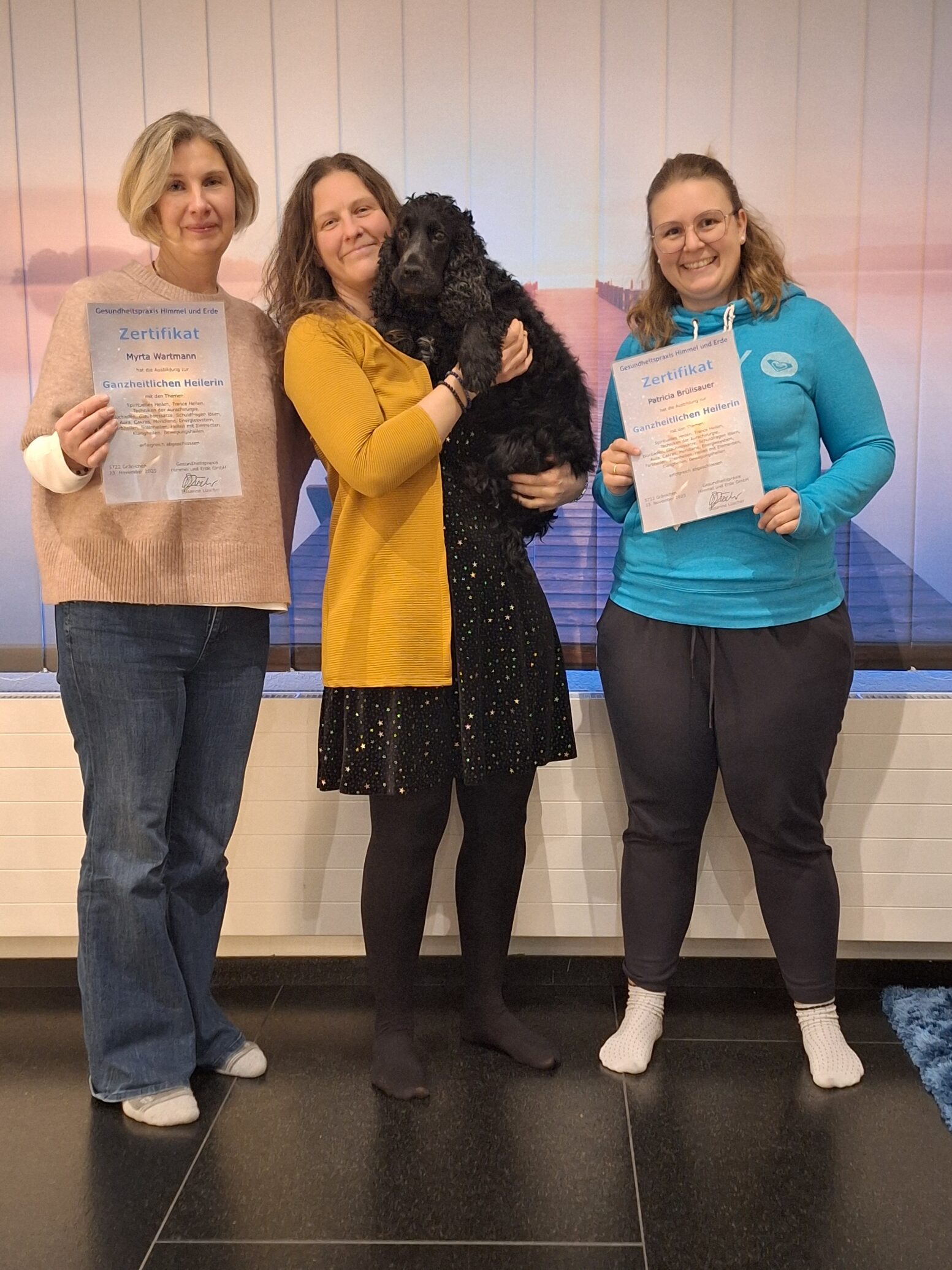 Herzliche Gratulation, Myrta und Patricia, zum erfolgreichen Abschluss der Ausbildung zur ganzheilichen Heilerin. Wir wünschen euch viel Erfolg bei der Anwendung des Gelernten in der Praxis!